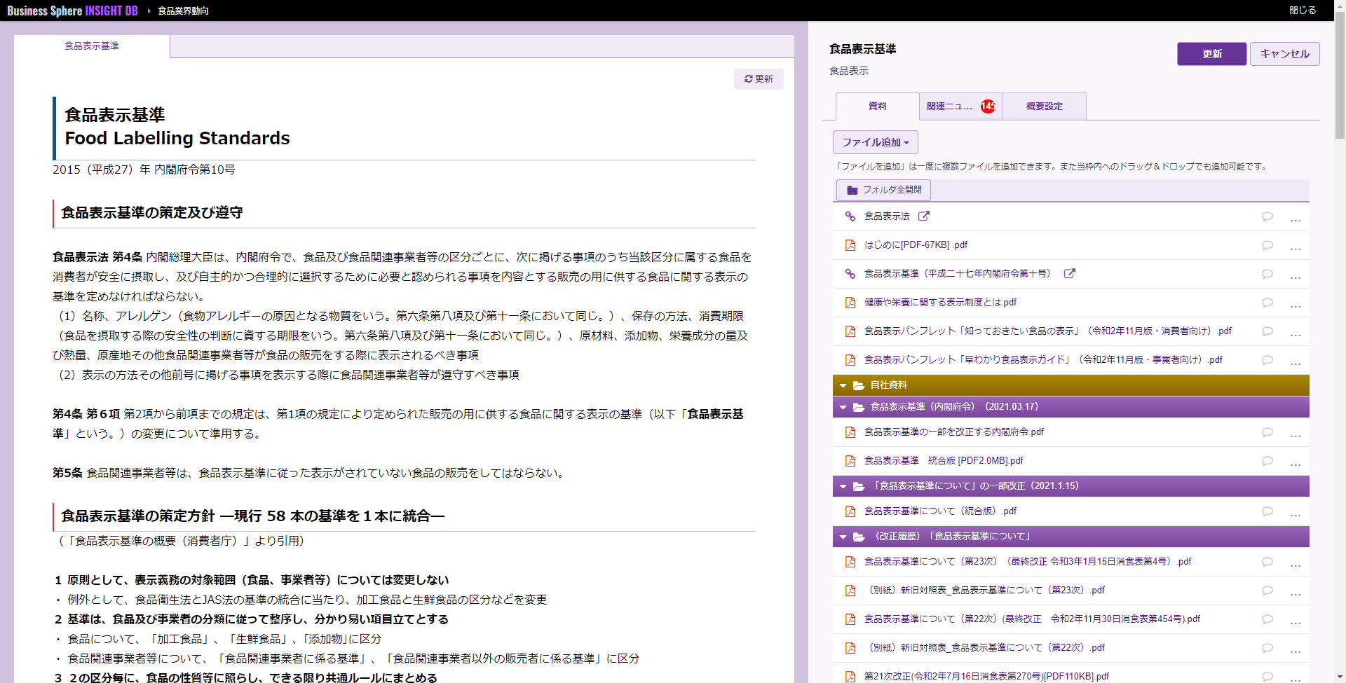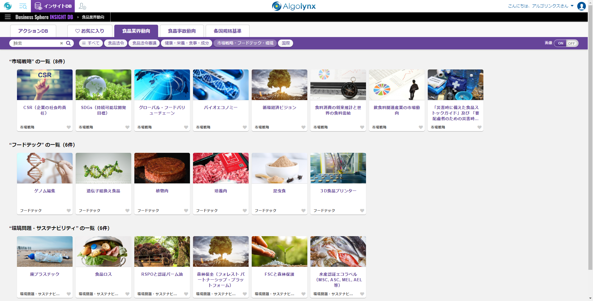 食品業界に特化したさまざまな切り口で分類・アーカイブすることで特定トピックを
