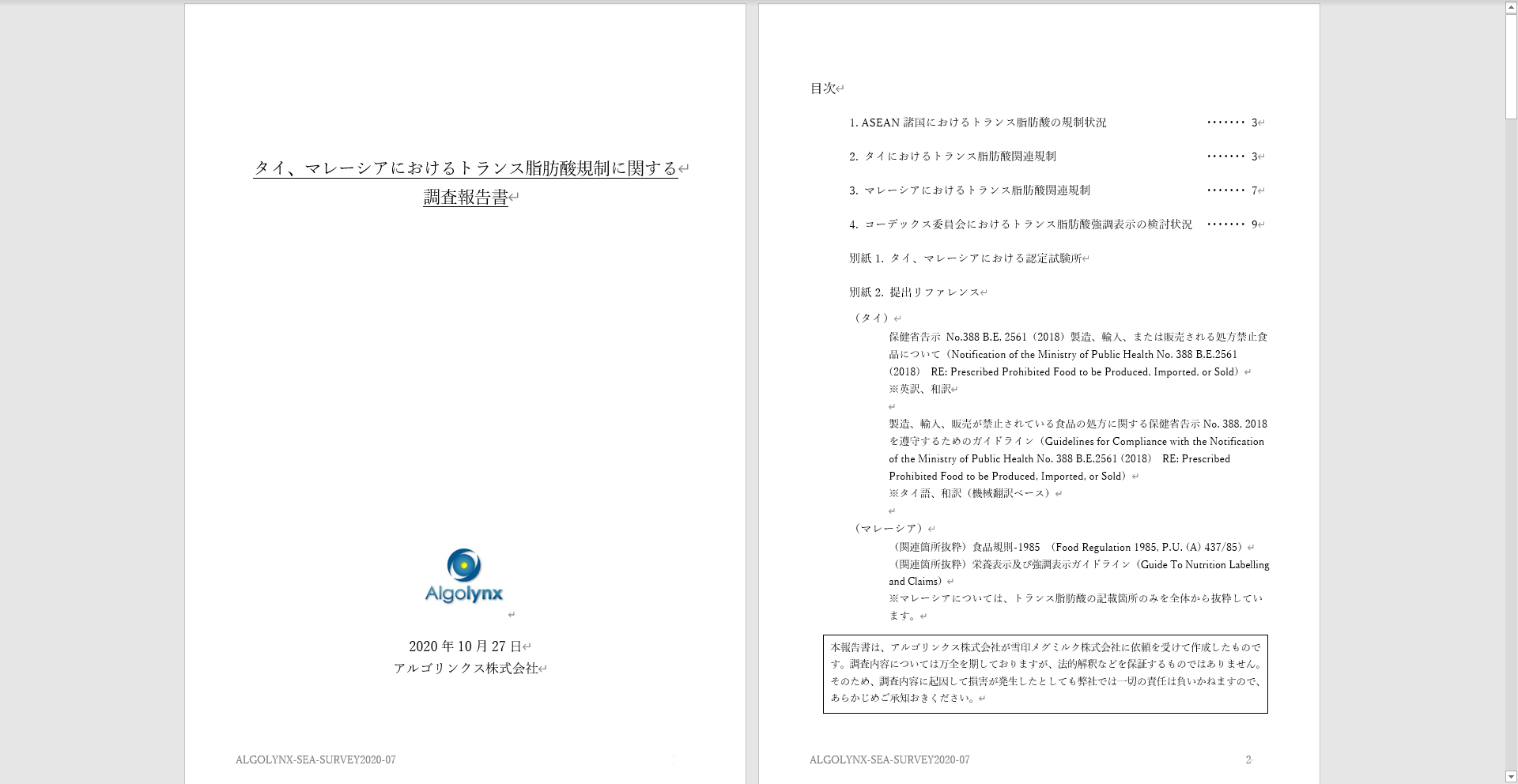 アジア/欧州/北米/オセアニアなど約20か国・地域の最新の食品規格基準を解説、法令文書をライブラリ化。海外進出を行う食品企業の品質保証や規制調査支援に重点を置いた実用的情報を提供します。