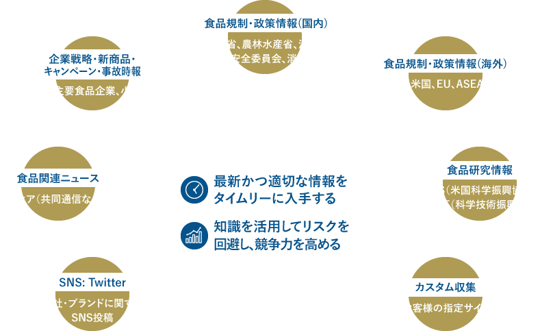 日本・各国の食品規制や安全情報、回収・事故、企業動向、食品研究など広範かつ網羅的に最新情報を収集。